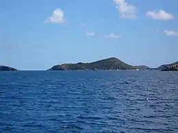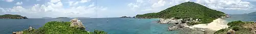 George Dog Island. Virgin Gorda is visible in the background, and West Dog (on the right) and Great Dog (on the left) can also be seen.
