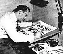George Evans in 1953 at work on "Frank Luke!" for Frontline Combat #13 (July–August 1953).