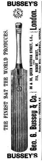 - ↑ "Advertisements: Geo. G. Bussey & Co". Cricket (London). 29 March 1906. p. 3.