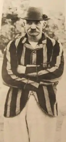 The Australian team touring England in 1886 did not meet with much success, losing all three Tests. Wisden Cricketers' Almanack remarked that "there is nothing to place the [Australians] on any higher standard than would have been attained by any good county team that went playing about the country".[27] Giffen made only 60 runs for in the Tests and took only four wickets.[28][29] In the other matches, however, Giffen was more successful. He made 1424 runs for the tour—only Sammy Jones scored more for the Australians—and took 154 wickets, including five wickets in an innings no less than 13 times.[30][31]