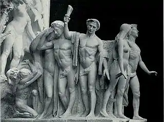 South group: The Burden of Life: The Broken Law (marble, 1911), Pennsylvania State Capitol, Harrisburg.[31]