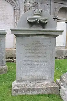 He died on 19 November 1819. He is buried in the churchyard of St Andrews Cathedral. The grave lies just west of St Rules Tower within a large group of divines and professors.