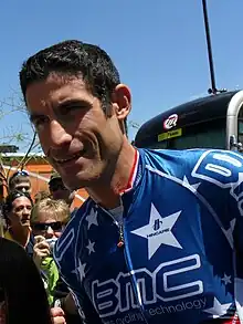 George Anthony Hincapie (born June 29, 1973) is an American former racing cyclist, who competed professionally between 1994 and 2012.[1] Hincapie was a key domestique of Lance Armstrong. Hincapie was also a domestique for Alberto Contador in 2007 and for Cadel Evans in 2011, when both men won the Tour de France. He was the owner and general manager of UCI Professional Continental team Hincapie–Leomo p/b BMC until it folded at the end of the 2020 season.[2]