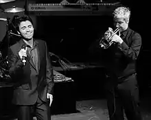 In September 2013, Komsky joined trumpeter Chris Botti's Central Asian tour as a solo vocalist.[15] He performed songs including "Time To Say Goodbye" and Botti's "Italia".[17] Komsky continued touring with Botti over three years in venues including Carnegie Hall,[18] the Hollywood Bowl,[18] the Kennedy Center,[19] the Blue Note Jazz Club,[20] Billboard Live Osaka,[21] the Orchestra Hall Minneapolis[22] and the Uptown Theatre in Napa.[17][23][24][25][26]