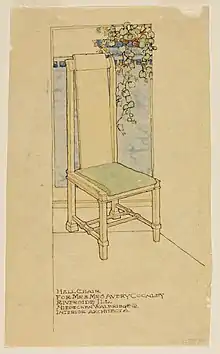 He also made interior design for Marion Mahony Griffin's commissions.[4] Mahony was a close associate of Frank Lloyd Wright along with Niedecken.[10] He designed furniture and murals for the Amberg and Irving houses which were Mahony commissions.[4] Mahony was one of the first licensed female architects in the world, and she is considered an original member of the Prairie School.[11]