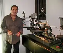 Marino next to a lathe at Sterling Sound