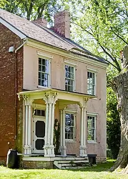 The George Markell Farmstead, also known as Arcadian Dairy Farm and the Thomas Property, is a historic home and farm complex located at Frederick, Frederick County, Maryland, United States. It consists of brick house built about 1865, a brick smokehouse, a bake oven, two stone domestic outbuildings, an ice house, a springhouse, a frame stable, a frame chicken house, a mid-20th century guest house, and various sheds and outbuildings. Nearby is a large gambrel-roofed concrete block barn. The main house has combined Greek Revival and Italianate stylistic influences. The once large Markell dairy farm, with its lane to the Ballenger Creek ford of the Monocacy River, served as the primary approach route to the battlefield by Confederate troops during the July 9, 1864 Battle of Monocacy during the American Civil War.[2]