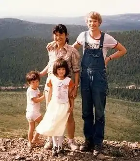 By the completion of the Longest Walk in 1983, Yoshiko had birthed a son and daughter during timeouts in Japan, as George marched the unbroken route up the Americas. After the walk, they reunited in Toki, Gifu, where her parents lived. George taught English, like many other foreigners in Japan do, until a full Professor at Kobe University in Maritime Science told George that because of his background at the ‘University of High Seas’, they were bringing him to Kobe, where he became an associate professor.[26] George had left school at age 16, so it was the only degree he ever earned. It was the first ‘professor’ rank granted to a non-university graduate in Japan since the Meiji Revolution of 1859.[39]