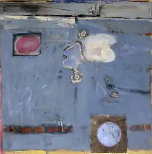 George Joji Miyasaki (1935-2013) was a painter and printmaker active in the abstract expressionist movement. He was born in Kalopa, Hawaii and moved to California in 1953. He received a B.F.A. and a B.A.Ed. from the California College of the Arts in 1957 and an M.F.A. from the same institution in 1958, studying under Richard Diebenkorn and Nathan Oliveira.[1] After teaching at the California College of the Arts and Stanford University, he was appointed a full professor at the University of California, Berkeley in 1964.[2] By 1958, he was experimenting with methods and materials, producing what appeared to be the first color lithographs by a West Coast Abstract Expressionist that were widely shown. (They were included in 13 exhibitions in 1958 alone.) [3] In 1960, Willem de Kooning visited Miyasaki's studio to try his hand at lithography. De Kooning, with the help of Miyasaki and Nathan Oliveira, created at least two abstract lithographs.[4]