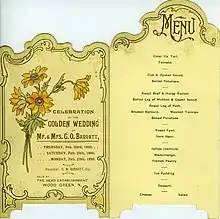 Invitation card and menu for Golden Wedding of founder of Barratt & Co. Ltd.