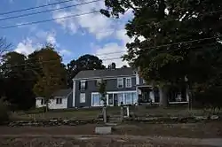 The George Pickering Nichols House is located in central southern Thompson, on the north side of Thompson Road (Connecticut Route 193) a few hundred feet west of where it passes under Interstate 395. It is a 2+12-story wood-frame structure, three bays wide, with a front gable roof and a single-story hip-roofed front porch extending across the front. A long two-story wing extends to the west (left) of the main block. The corners of the building are pilasters, supporting a frieze and entablature at the cornice. A polygonal bay, added c. 1880, projects from the east side of the main block, and is decorated with brackets. The interior retains a number of original features, including wide pine floors and horsehair plaster walls.[2]