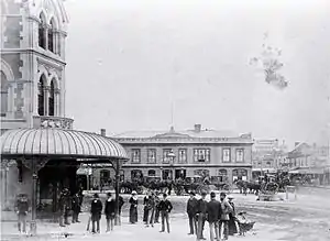 Exactly a year later, Ruddenklau opened the two-storey City Hotel on the site. Its frontage covered the whole length between Colombo and High Streets.[18] Only two months later, a fire broke out in a building on the opposite side of Colombo Street and due to the night being very still, the fire could be contained by cutting a fire break through the block. In total, 14 houses were lost. At one point, the heat was so great that the fire ignited a building across the road, situated next to the City Hotel, but the fire service could quickly extinguish the flames.[19][20] Yet another fire occurred in pretty much the same location in June 1867 and this time, the heat caused damage to Ruddenklau's building.[21]