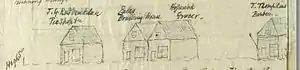 Original houses between High and Colombo Streets in the early 1860s: Ruddenklau, Eales Boarding House, Hopsack (grocer) and T. Thompkins (baker)