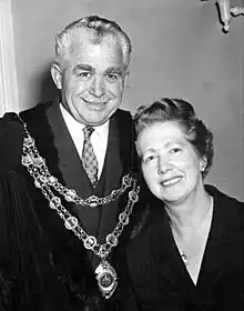 Mayor George Gahan in 1965 with First Lady of Prahran Janet Irene Gahan née Sheppard, Herald & Weekly Times Limited portrait collection