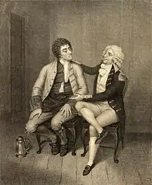 George Wathen as Archer with Richard Barrymore as stub in The Beaux' Stratagem by Philip Audinet, 1792.