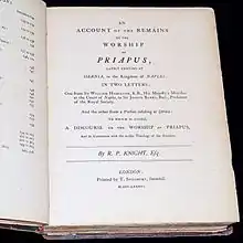 In the 1860s there was a lot of interest in the theories concerning the worship of Priapus and Witt organised for Richard Payne Knight's Discourse on the worship of Priapus and its connection with the mystic theology of the ancients to be republished with additional material and illustrations in 1865.[2] Following an illness the same year, Witt approached the British Museum to enquire whether they would take his collection. The museum's director Anthony Panizzi agreed to take the objects even though they became a major part of a secret collection known as the museum's Secretum.[7] Panizzi did not think twice as he considered the collection to be of the right quality for his museum. The collection appeared to be chosen primarily on the basis of its obscenity. The collection included modern photographs of women partially dressed as gladiators which were not thought to be academic artefacts but they were designed to be erotic. One of the artefacts was a toothed chastity belt which was thought to be medieval but was in fact a contemporary invention.[3] In general however Witt's collection covered the major civilisations of Greece, Rome, Egyptian, Indian, Chinese, Tibetan, Japanese and Native American. Besides votive objects, bronzes and pottery his collection also included watercolours and sketches. Of particular note were his library and the records of his correspondence which included the details of objects not in the collection including a catalogue of the secret cabinet of Naples Museum.[2]