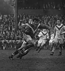 George Aillères playing against Great Britain in Wigan, 1967