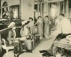 The French Government supported the couture "old masters" including Doeuillet during World War I.[12] They sent dresses from their prestigious designers to demonstrate French fashion at the Panama Pacific International Exposition of 1915.[12][13] Dresses designed by Georges Doeuillet can be found at the Metropolitan Museum of Art in New York City,[14] the Musée des Arts Décoratifs at the Louvre in Paris,[15] the Fabyan Villa Museum in Geneva, Illinois, and at Alingsås Museeum in Alingsås, Sweden.