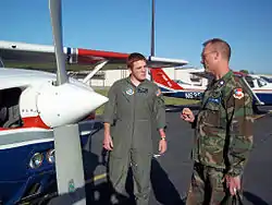 Powered Flight Encampments instruct cadets in the basics of aviation. Cadets learn about ground and air procedures, as well as fly in CAP owned Cessna 172s and 182s. Cadets that do well during the program may earn their solo wings.[2]