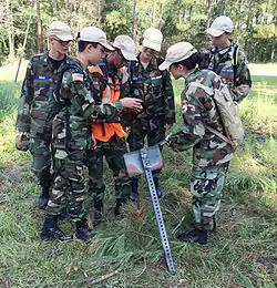 Cadet Airmen First Class Blake Jones, Echo Flight, Squadron 2, Georgia Wing Civil Air Patrol, points his team in the direction to find their next objective during land navigation training, July 22.