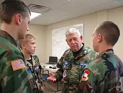 Lt. Col. James Card, Georgia Wing Civil Air Patrol, mentors with young cadets.