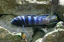 Gephyrochromis lawsi is a species of haplochromine cichlid which is endemic to the northern part of Lake Malawi in Malawi and Tanzania.[2] This species is normally found at deep levels where the steep, rocky coastlines meet sand substrates where it prefers patches of sand at average depths of around 20 metres (66 ft).[2] They feed mainly on loose aufwuchs. The males are weakly territorial and will defend their territories against intruderswhile the females are solitary. It may be threatened by overfishing by fishermen using beach seine nets, although it is a bycatch rather than one of the target species, it is sometimes collected for the aquarium trade.[1] The specific name honours the Scottish missionary Robert Laws (1851-1934).[3]