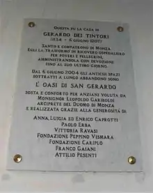 Monza has three churches dedicated to him: San Gerardo al Corpo, San Gerardino (also known as San Gerardo Intramurano), and Sancto Gherardo.