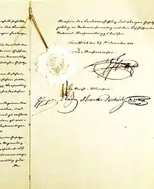 Introductory law of the Basic Rights, 27 December 1848, with the signature of the Imperial Regent