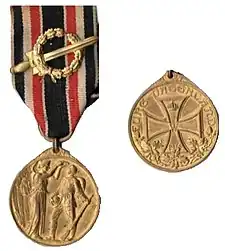 Originally the Legion of Honor was awarded in a single class. An attachment to the medal, showing a wreathed sword, was sometimes presented with the medal, however the specific criteria for the attachment remains unknown. In 1930, a veterans organization known as the "Knights of the German Legion of Honor" began to issue a Knight's Cross version of the medal; however, few photographs survive of this award.