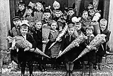 German childhood in World War II describes how the Second World War, as well as experiences related to it,[1] directly or indirectly impacted the life of children born in that era. In Germany, these children became known as Kriegskinder (war children), a term that came into use due to a large number of scientific and popular science publications which have appeared increasingly since the 1990s.[2] They describe the same phenomena from different perspectives, using diverse methods and various stylistic means. The literature on this subject has not yet been able to produce a universal and binding definition. However, there is consensus that the impact of war on children can be felt decades later,[3] often increasing with advancing age, and that at times the impact can be passed on mute to subsequent generations.[4]