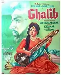 Ghalib is a 1961 Pakistani black and white biographical drama film based on the life of famous Urdu poet, Mirza Asadullah Khan Ghalib.[2] The film was directed and produced by Atta Ullah Hashmi, and the story was written by Shatir Ghaznavi with dialogue by Agha Shorish Kashmiri.[3][4] The film stars Sudhir in the title role of Ghalib while Noor Jehan played his love interest and also sang songs for the film.