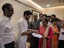 Residents receiving documents from Maharashtra Environment Minister