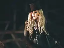 Madonna confirmed on The Howard Stern Show that she would be filming a music video for the song in Los Angeles.[69] Directed by Jonas Åkerlund, who had previously helmed Madonna's music videos for "Ray of Light", "Music", "American Life", "Jump" and "Celebration", the music video also starred actor Terrence Howard.[70][71] The main theme behind the video was "an apocalyptic situation mimicking the end of the world", as described by Kim Peiffer from InStyle.[72] The director came up with the concept of a dystopian future and shot it at an old steel mill.[73] Madonna's look in the video was styled by B. Åkerlund, wife of Jonas, who blended contemporary fashion trends like military-bandleader-Victorian and gave it her signature characteristics. She created a leather greatcoat with a billowing cape, from designer label Chrome Hearts, considering the rock-n-roll silhouette of the video.[74]