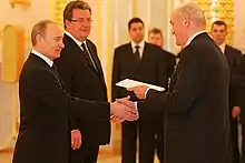 - ↑ Владимир Путин принял верительные грамоты послов десяти иностранных государств. (in Russian). Presidential Press and Information Office. 22 April 2008. Archived from the original on 3 August 2012. Retrieved 2009-03-04.