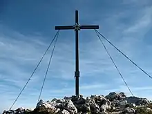 The Gimpel is a peak in the Tannheim Mountains, a sub-range of the Allgäu Alps. It is 2,173 m high. The name is derived from the Gimpelalpe alp in der "hollow" (Mulde) (Celtic comba = English "coombe"). The Gimpel is made of Wetterstein limestone.