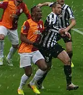 During the 2008–09 season, Chiellini remained as first choice in central defence alongside Nicola Legrottaglie. Chiellini scored his first goal in Europe on 13 August 2008 as Juve beat Artmedia Petržalka 4–0 in the first leg of the UEFA Champions League third qualifying round tie.[17] Four days later, he injured his left knee again during the Trofeo Luigi Berlusconi against AC Milan and missed the start of the Serie A season,[18] returning to duty in September starting in each of Juve's first three Champions League group games. At the end of the year, he was named Serie A Defender of the Year for 2008 at the annual Oscar del Calcio awards ceremony. On 10 March 2009, Chiellini was sent off for a second bookable offense during the Champions League first knockout round second leg tie at home in a tightly contested match against Chelsea, but Juventus were eliminated 3–2 on aggregate after holding the former English champions to a 2–2 draw.