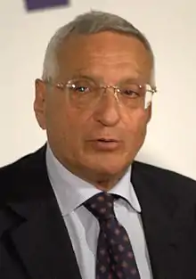 La Malfa served as secretary of the Italian Republican Party (PRI) from 1987 to 1993, when he stood down and was indicted to face trial over a corruption scandal.[4][5] He returned to politics in 1994,[6] and has since 2001 been president of the party.[7] From 2001 to 2005 he was President of the Finances Commission of the Italian Chamber of Deputies.[8] He was Italian minister for European Union Affairs from April 2005[9] until the elections of April 2006, when the centre-right coalition lost its majority; La Malfa was nonetheless elected to Parliament.[10] La Malfa was re-elected to the Chamber in the 2008 Italian general election with The People of Freedom, but on 24 September 2009 he announced his detachment from the Berlusconi IV Cabinet through a letter published by Corriere della Sera.[11]