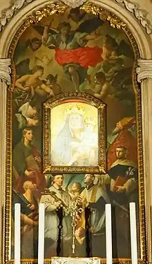 The painting, by de Pieri, surrounding the 15th-century image of Our Lady of Grace in the altar of the same name in Rovigo Cathedral.