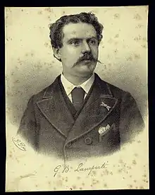 Giovanni Battista Lamperti was born in 1839 in Milan, Austrian Empire to Italian singing teacher Francesco Lamperti. He was a chorister at the great cathedral and studied voice and piano at the conservatory. A student and later accompanist for his father at the conservatory, Giovanni knew better than anyone else the method his father taught (which he claimed descended from the great castrato-teacher Antonio Bernacchi). Appropriating it for teaching his own students, Giovanni also began teaching voice at the Milan conservatory and then for 20 years in Dresden, followed by Berlin. His preferred teaching arrangement was having three or four students present at each lesson: each would get their turn while the others observed and learned thereby. He was said to be a strict, exacting instructor not given to flattery, but who enthusiastically praised his students upon exceptional achievement. Many of Giovanni’s students became international opera stars including Irene Abendroth, David Bispham, Agnes Huntington, Franz Nachbaur, , Marcella Sembrich, and Roberto Stagno. See: List of music students by teacher: K to M#Giovanni Battista Lamperti.