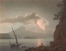 Lusieri believed that he might have been more famous as an artist had he not spent so much time working for Lord Elgin and his antiquity collection. He had originally been known for the accurate landscapes and studies of buildings in Italy and Sicily that he often sold to young gentlemen on their Grand Tour, especially after he moved to Naples in 1782 and concentrated on views of Mount Vesuvius. These paintings sold well because the volcano was then quite active. Lord Byron regarded him as an important Italian artist, although he may have been biased as he was also the good friend of Lusieri's brother-in-law, Nicolo Giraud.[3] Lusieri painted his landscapes in accurate detail, and resisted the fashion for imaginative constructions imitating Claude Lorrain, arguing that paintings should be taken from real life. From 1799 he spent his time working for Lord Elgin in Greece, and less time painting.[4]