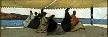 His old age was marked by a bitter disillusionment with the social and political order that had emerged in postunification Italy.[4] He continued teaching at the Accademia, but preferred clinging to tradition instead of adopting new ideas. Known for his honesty and candor,[5] Fattori deplored the direction he saw some of his students were taking in the 1890s, as a group of them, led by his favourite pupil Plinio Nomellini, adopted a Neo-impressionist style, the Divisionismo (Chromoluminarism).[6] In 1891 he engaged in a polemic against pointillism.