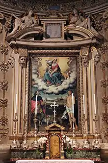 Giovanni Paolo Lolmo (c. 1550–1593) was an Italian painter of the late-Renaissance period, active mainly in his native city of Bergamo. He is also known as Gian Paolo Lolmo. In 1587, he painted Saint Rocco and Sebastian for Santa Maria Maggiore (Bergamo).