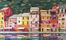 At Portofino she successfully tries out the first paintings with her technique.