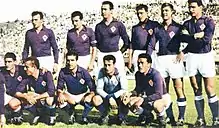 Sarti (crouched, second from right) with Fiorentina scudettata in the 1955–56 season
