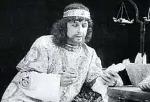 Giuliano l'Apostata was produced by Bernini Film and directed by the company's general manager, Ugo Falena. Falena was best known for his film adaptations of theatrical works, especially operas. Like many of his other works, Giuliano l'Apostata is connected to the musical world, and it was written in close collaboration with the composer Luigi Mancinelli.[6] The screenplay took some inspiration from the 1901 book Julian the Apostate (Italian: L'imperatore Giuliano l'Apostata: studio storico) by Negri.[7] The screenwriters used artistic license in various ways; for example, the real Eusebia died before Constantius, who remarried after her death.[8] The reliance on an original musical score and the handling of credits and captions follow the model for large-scale peplum films that had been established with Giovanni Pastrone's and Gabriele D'Annunzio's Cabiria from 1914.[9] Going further than Ildebrando Pizzetti's musical score for Cabiria, Mancinelli's composition for Giuliano l'Apostata includes some instances where captions from the film are sung by a soprano or a choir.[10]