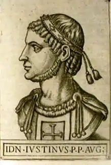 ![]() Late 16th-century depiction of Emperor Justin I, the opera's protagonist | |