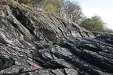A glaciated rock is a rock that shows evidence of having been exposed to a glacier. Generally it has striations or deep scratches, caused more by the debris being carried by the glacier than by the ice itself. Glaciated rocks may also be erratics - that is, not belonging to the local rocks but having been transported there by the glacier.
