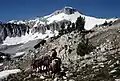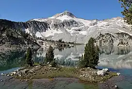 Glacier Peak is located at the center of the Wallowa Mountains and is set within the Eagle Cap Wilderness, on land managed by Wallowa–Whitman National Forest.[2] The peak is situated 2.6 miles northwest of Cusick Mountain, 0.5 mile southwest of Glacier Lake and 0.7 mile southeast of line parent Eagle Cap.[2] Precipitation runoff from the mountain drains east into headwaters of the West Fork Wallowa River, and west into the East Fork Eagle Creek. Topographic relief is significant as the summit rises 3,100 feet (940 meters) above Eagle Creek in less than one mile. On the north slope, a permanent snowfield called Benson Glacier is a relict of the Wallowa Glacier which carved the canyon of West Fork Wallowa River for almost 20 miles during the late Pleistocene.[4] The peak is composed of granodiorite of the Wallowa Batholith. This landform's toponym has not been officially adopted by the United States Board on Geographic Names, so it is not labelled on USGS maps, and will remain unofficial as long as the USGS policy of not adopting new toponyms in designated wilderness areas remains in effect.