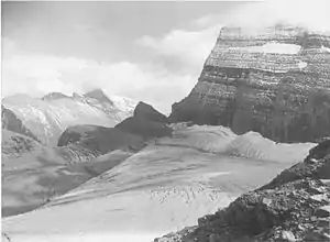 There are at least 35 named glaciers in Glacier National Park (U.S.). At the end of the Little Ice Age about 1850, the area containing the national park had 150 glaciers. There are 25 active glaciers remaining in the park as of 2022. Since the latest interglacial period began around 10,000 years ago, there have been regular climate shifts causing periods of glacier growth or melt-back. The glaciers are currently being studied to see the effect of global warming. The glaciers in the park have been in a general state of retreat since at least the year 1850, which is oftentimes cited as the end of the Little Ice Age, when mid-latitude glaciers reached their largest historical maximum.[1][2] Though believed in the early 2000s that most of the glaciers in the park would disappear by the year 2020, more recent studies now give the year 2030 as a more likely date for this disappearance. A study done in 2003 on two glaciers indicated they would be completely gone by the year 2030, though some other glaciers may remain as small isolated ice bodies for a longer duration.[3]