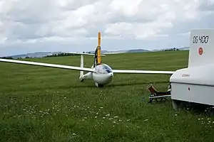 As was typical for the time, the engine, propeller and supporting pylon constitute a single unit that extends into the airflow (in more recent self-launchers the engine usually stays inside the fuselage). The type may be flown either with 15 metre or 17 metre wingtips.